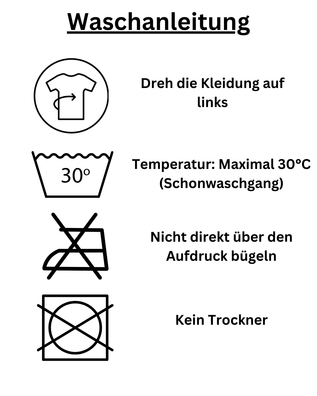 Nach dem Training kalt waschen (max. 30°C) und auf links drehen. An der Luft trocknen, nicht bleichen, nicht bügeln, nicht chemisch reinigen, und den Trockner vermeiden.